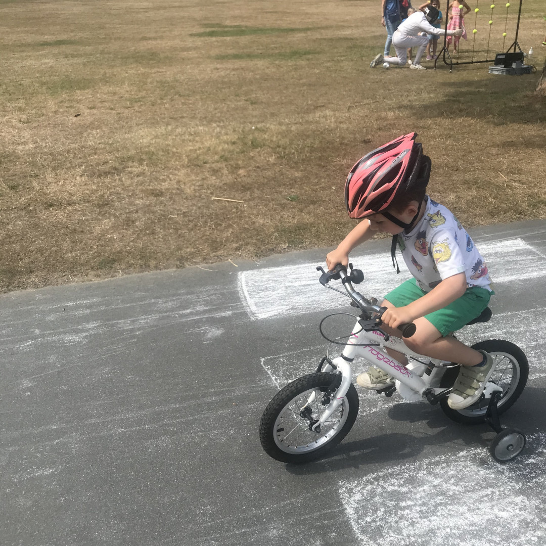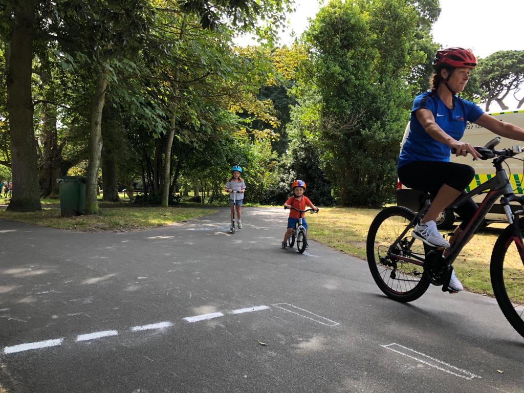 Last Saturday, at the Sports Commission's Family Fun Day, our BeActive lead, Alun, laid out a pop-up bike park with help from Nicola at Bikeability. They chalked out a ‘practice road’ which included a filter, a roundabout, a stop line and a pedestrian crossing. The day provided youngsters and their families, with the opportunity to learn to ride as they practiced being "out on the road". It was also an opportunity to gauge the interest of the public on developing a permanent bike park. We had positive feedback from many individuals as they believed this would be a great initiative to give young people a safe environment to practice cycling and build their confidence.