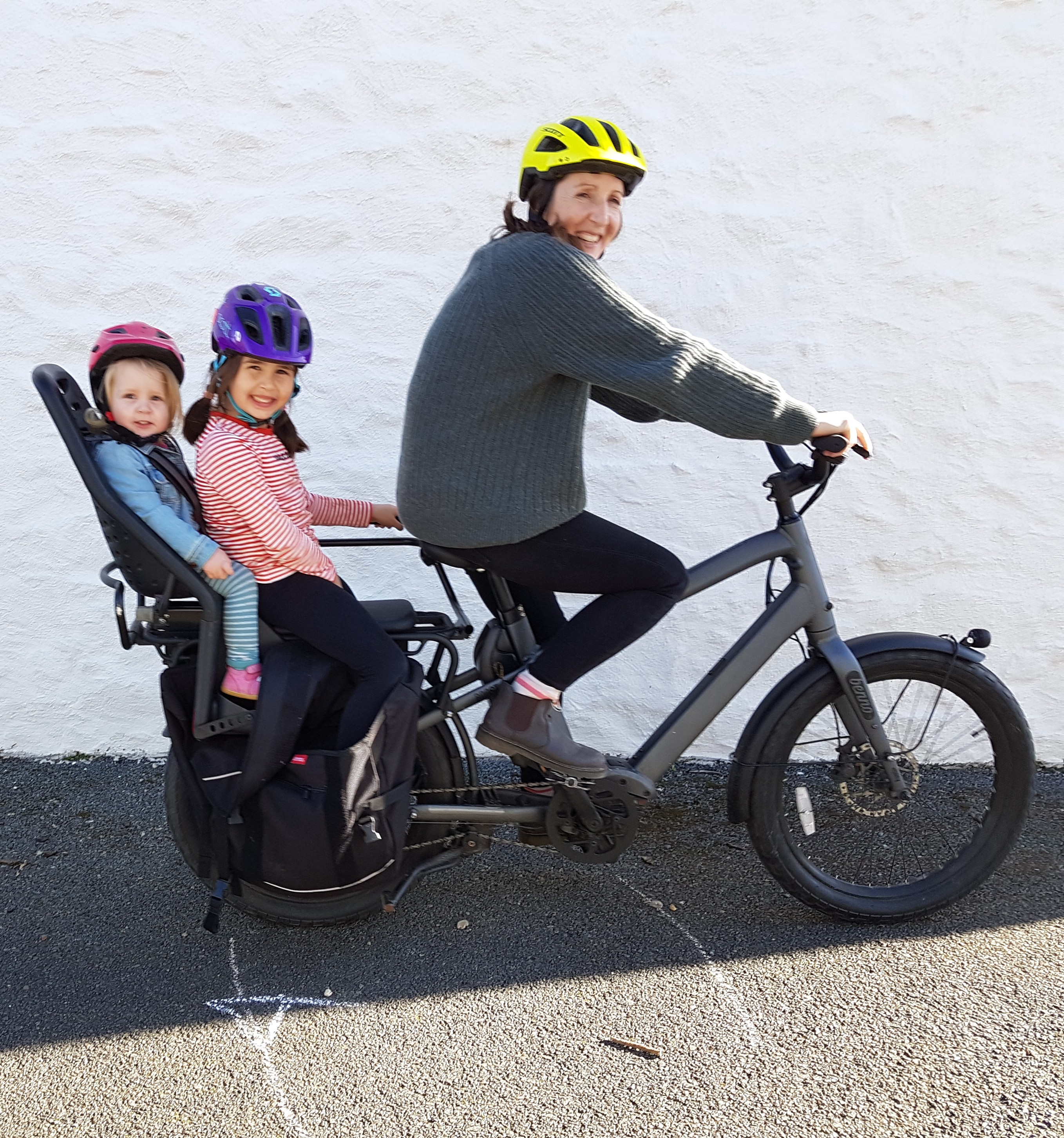 Sometimes the weather is bad, but we all have good waterproofs and the children, rather than being miserable on the back of our electric cargo bike, aren’t bothered at all by the weather. I also notice, whereas they might be quite quiet in the car, they sing loudly, we have proper chats and we feel more connected to nature.