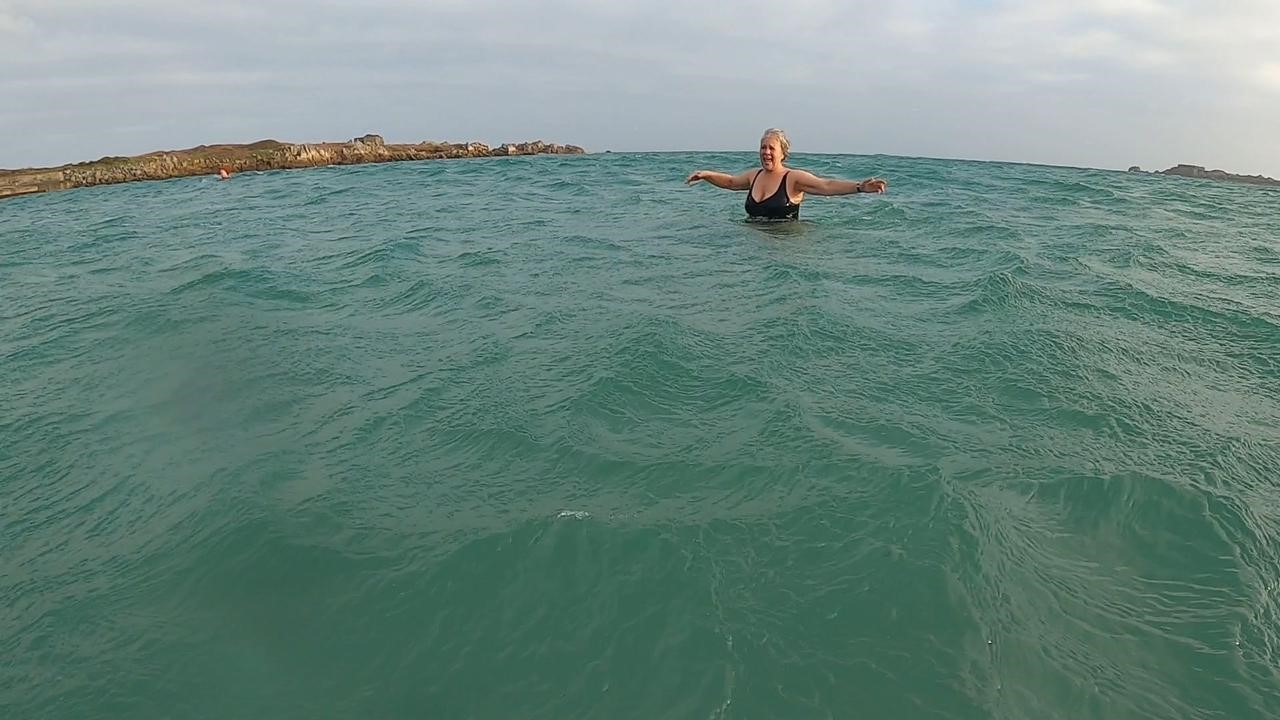 I’d walked down to Havelet last year to consider a swim, but was feeling very apprehensive about going in, not having done a huge amount of sea swimming. Another lady encouraged me. Now there are five of us, all about the same age, me being the oldest, who last year were strangers and now are the best of friends. There is a great sense of social belonging, friendship and fun. We do laugh a lot.