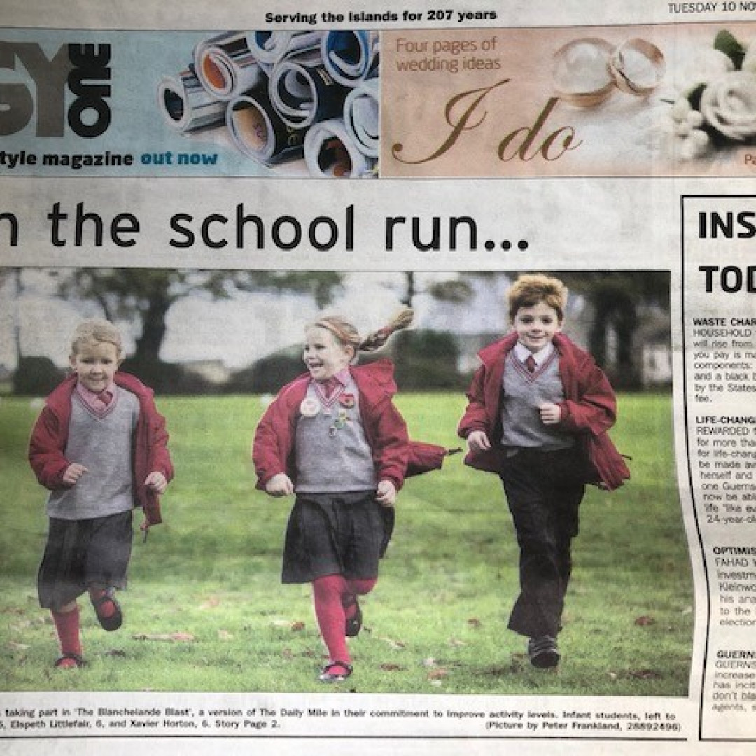 Blanchelande College pupils will start their school day with a brisk walk or run at least twice a week as teachers launch ‘the Blanchelande Blast’, a version of The Daily Mile. Designed to energise children ahead of their lessons and support an island-wide commitment to increasing children’s physical activity levels from an early age, juniors and infants will take to their school field two mornings a week. Their efforts were picked up by Daily Mile UK!