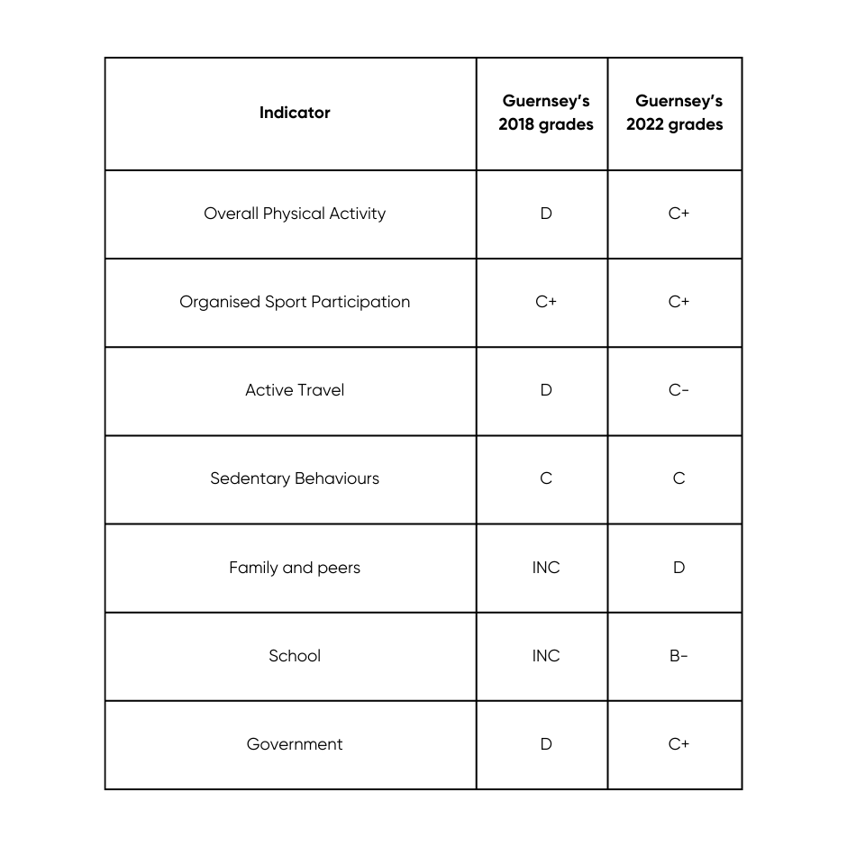 The report has been produced by a multi-sectoral working group of ten people with diverse expertise in the activity levels of young people in Guernsey, including Education, Public Health, Health Improvement, Sports and Leisure sectors and Research Policy & Strategy. This group collated local evidence against seven indicators of children’s physical activity, which was then graded A to F, and inconclusive for indicators where there was insufficient data. This grading system was used by all countries involved. The grades were independently verified and audited by experts from the Active Healthy Kids Global Alliance.