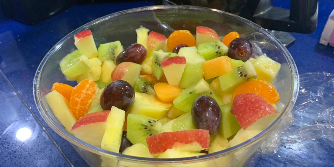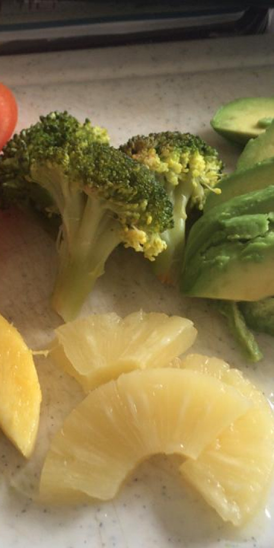 Platter of pineapple, mango, tomato and avocado