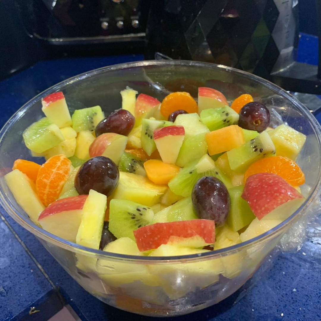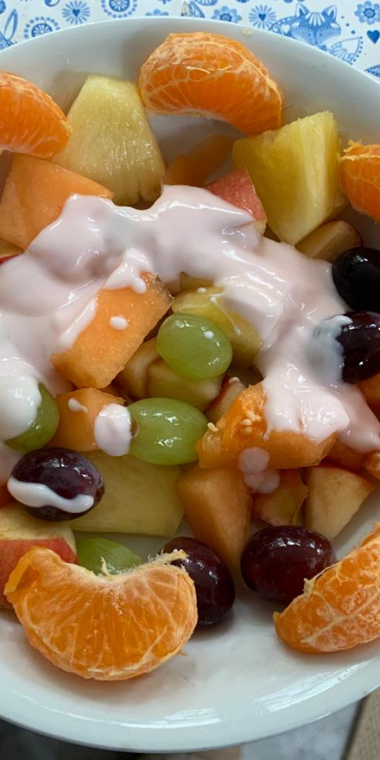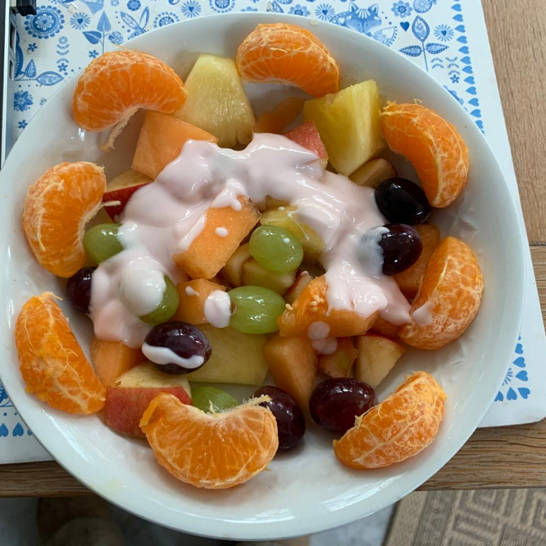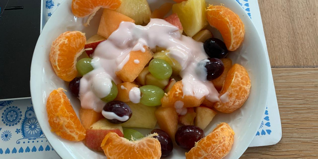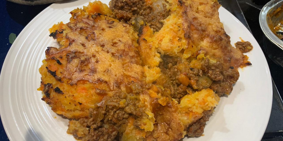 Shepherds pie with root mash (swede, carrot and parsnip); followed by a fresh fruit salad