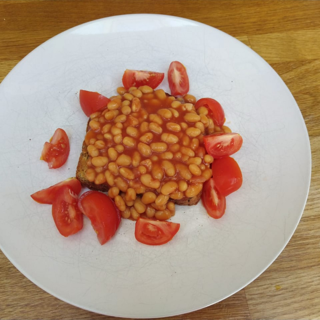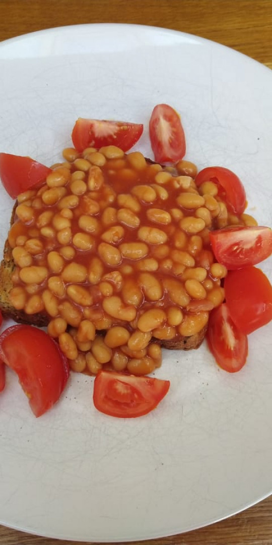 Tomatoes with baked beans on toast