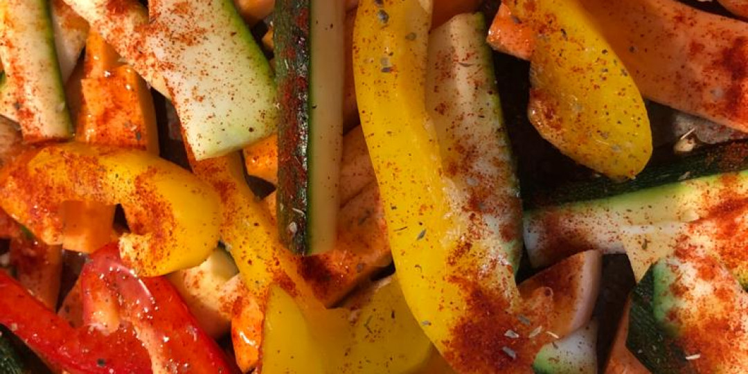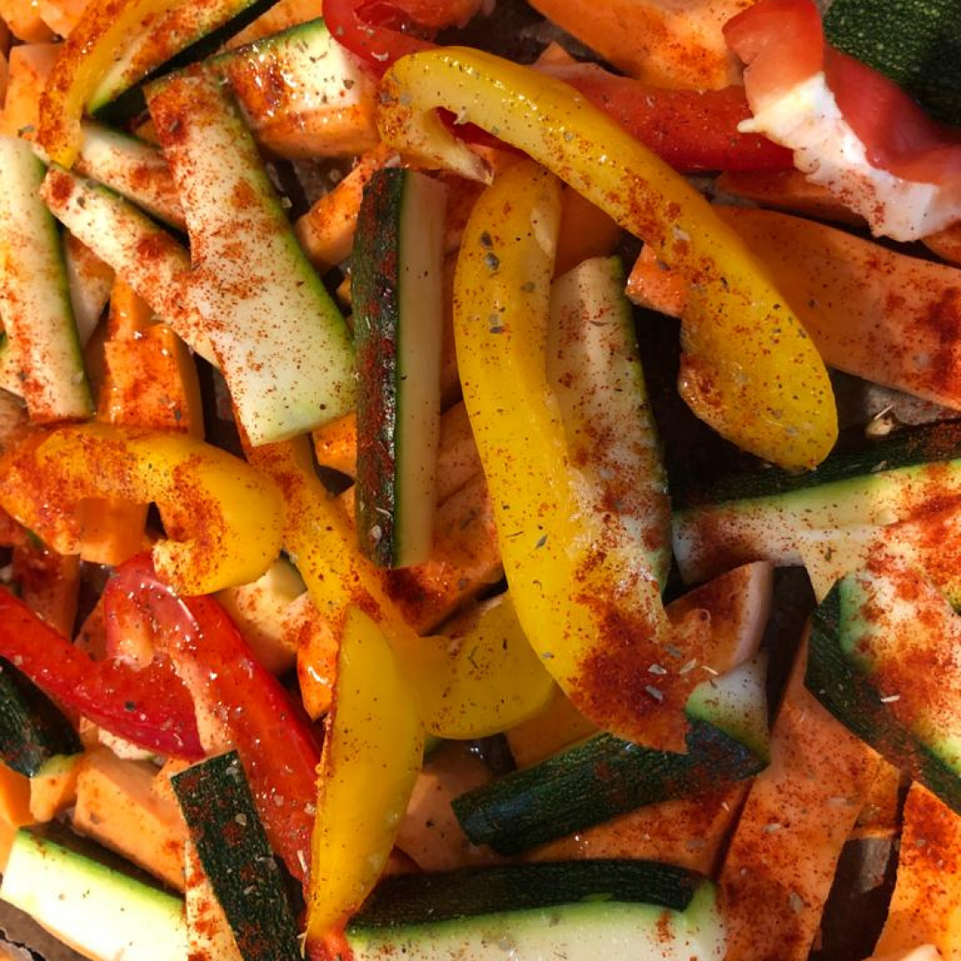 Roasted veg such as courgettes, peppers & sweet potatoes which were added to fajitas