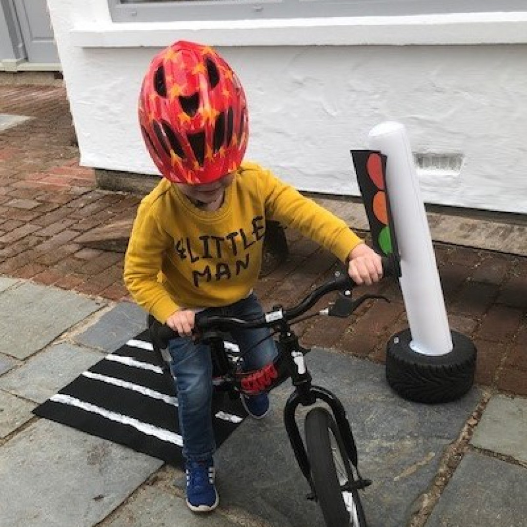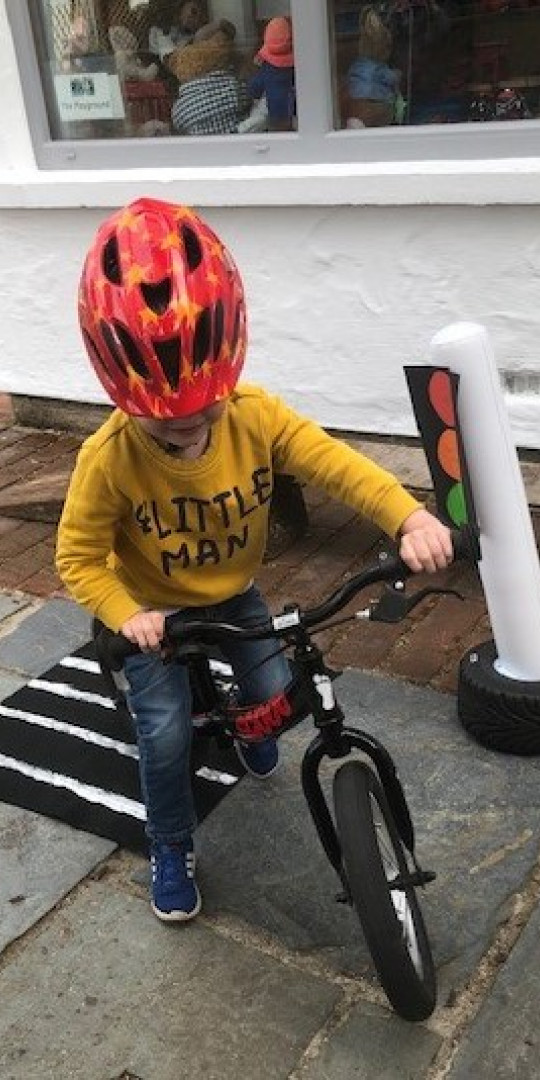 This follows the recent laying of new road markings for young cyclists at Saumerez Park . The markings were designed to give children the chance to practice their bike skills in a safe environment and include a yellow line, zebra crossing and roundabout.