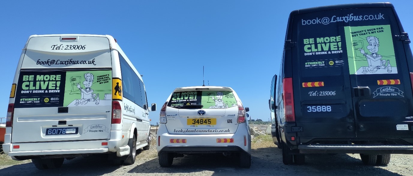 “Be More Clive, Don’t Drink and Drive” is a new cartoon campaign on the serious topic of drinking and driving. Clive is now all over Guernsey, thanks to CT Plus and Luxibus & Lambourne Taxis who are displaying the artwork on their vehicles. Clive can also be found at the KGV All-Weather pitch!